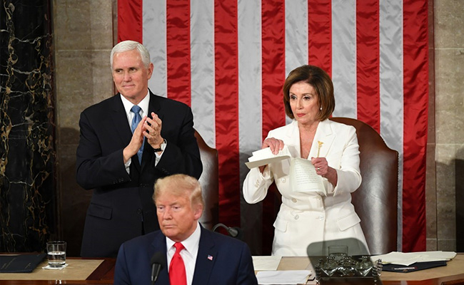 US House Speaker Nancy Pelosi ripped up her copy of Donald Trump's State of the Union address Tuesday, in a pointed political gesture after listening tight-lipped to the president tout his achievements to Congress.