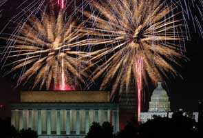 President Barack Obama led Washington's celebrations, which included a concert on the National Mall, by hosting members of the US military and their families on the South Lawn of the White House.