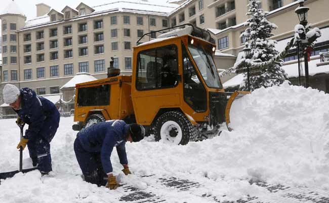 Workers clear snow off an ice skating rink in Beaver Creek, Colorado, December 4, 2013. (REUTERS)