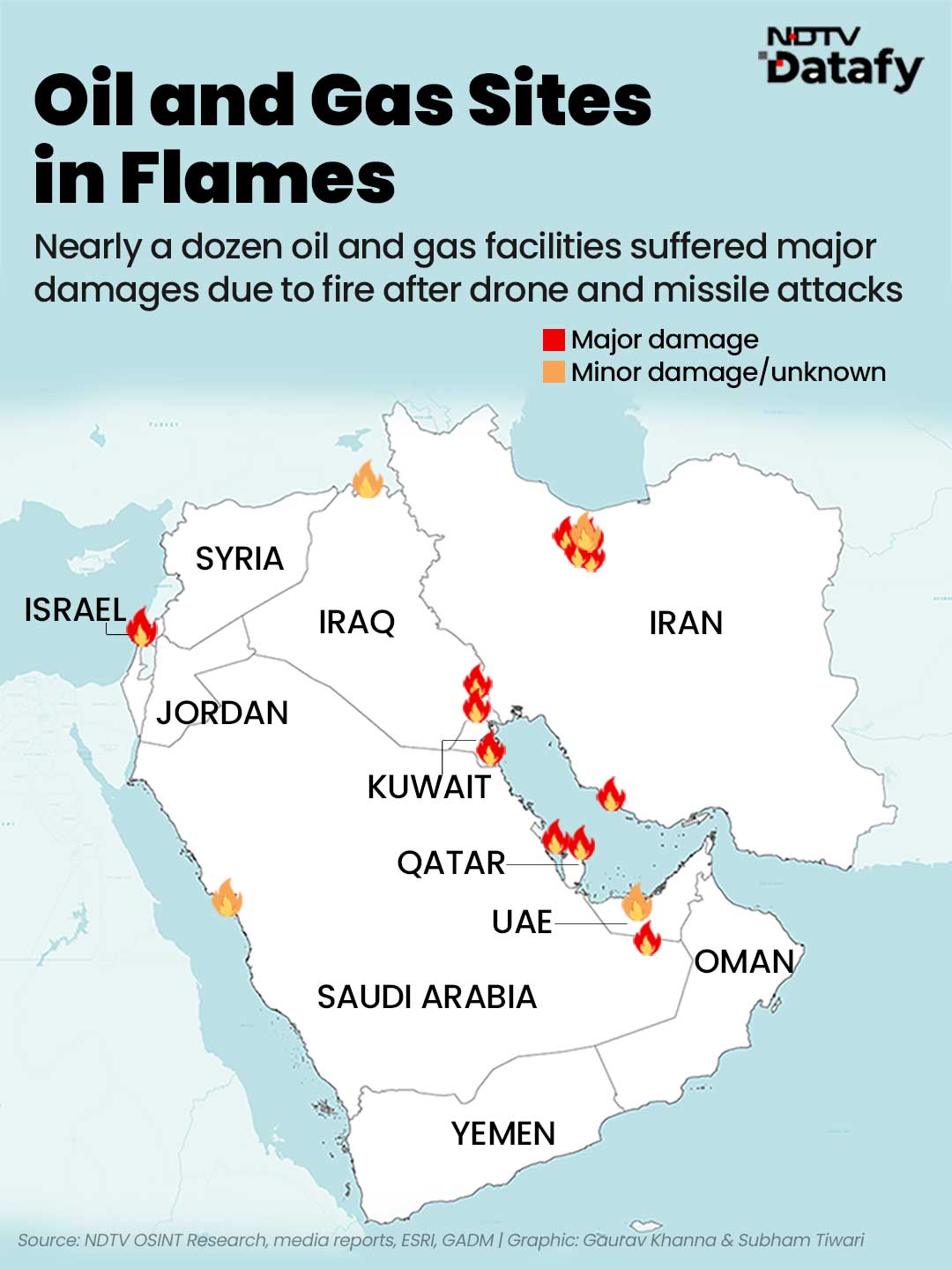 Multiple key facilities have been damaged or shut. Drone and missile attacks struck refineries and LNG plants in Saudi Arabia, Kuwait and Qatar, while missile debris forced the shutdown of the UAE's massive Habshan gas complex and repeated attacks targeted its Fujairah export terminal.
