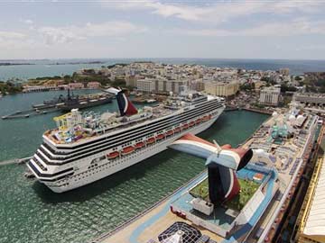 This July 16, 2014, photo, shows an aerial view of cruise ships docked at the Old San Juan pier in Puerto Rico.