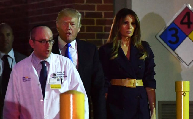 US President Donald Trump and wife Melania made a surprise visit Wednesday to the bedside of Republican Congressman Steve Scalise, critically wounded in a shooting at a charity baseball event.
