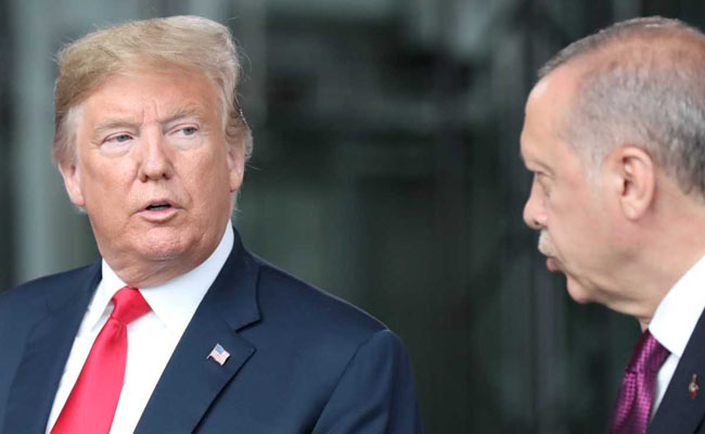 Trump's announcement came less than an hour after Turkish President Tayyip Erdogan urged Turks to help defend the country against what he called economic war against the country. Erdogan appealed to a crowd in the city of Bayburt to exchange dollars and gold for Turkish lira to prop up the plunging currency.
