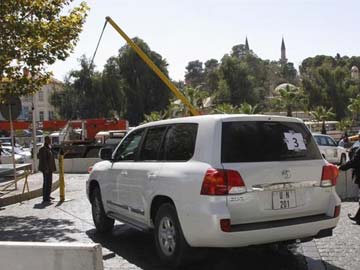 UN vehicles transporting a team of experts from the Organisation for the Prohibition of Chemical Weapons, leave their hotel in Damascus