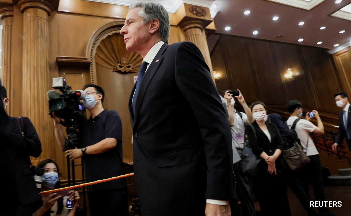 U.S. Secretary of State Antony Blinken walks to a meeting at the Diaoyutai State Guesthouse