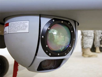 Soldiers stand behind a camera by Unmanned Aerial System 'Shadow' during an official presentation by the German and U.S. Unmanned Aerial Systems (UAS) at the U.S. military base in Vilseck-Grafenwoehr