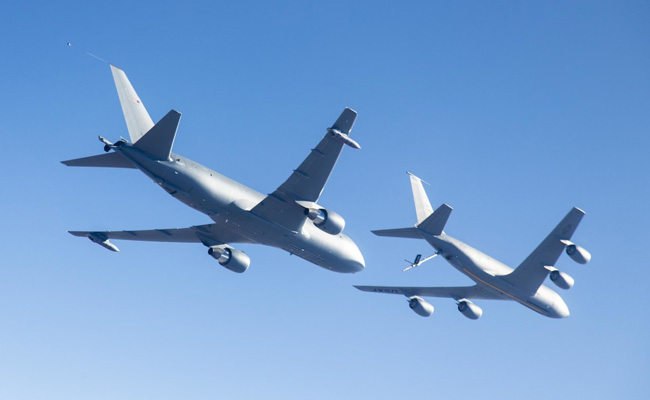 The multi-role aircraft makes mid-air refueling possible for fighter jets and other aircraft, but can also be used for military transport.