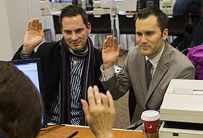 Same-sex marriage is a politically charged issue in a country where 31 of the 50 states have passed constitutional amendments banning it, while Washington, D.C., and nine states have legalized it, three of them on Election Day last month.
