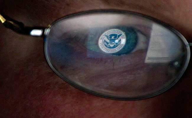 The logo of the U.S. Department of Homeland Security is reflected in the spectacles of an analyst working in a watch and warning center of a cyber security defense lab at the Idaho National Laboratory in Idaho Falls, Idaho. (Reuters Photo)