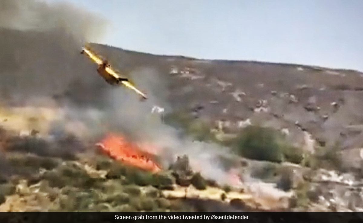 The fire department said the Canadair aircraft crashed into a ravine close to where the fire started on Sunday. Footage on state TV ERT showed the plane clipping a tree before falling nose-first and exploding.