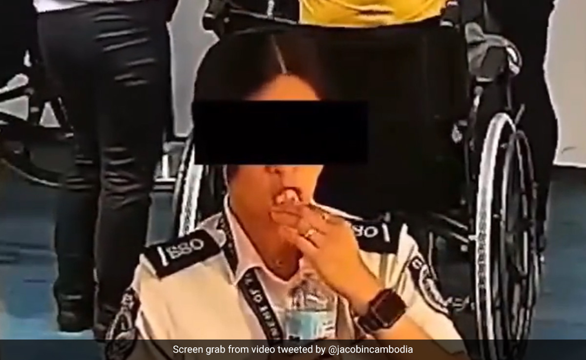 A video going viral online showed the security officer stuffing the cash into her mouth and then covering it with a handkerchief. It also showed her drinking water while using a finger to push the rest into her mouth.