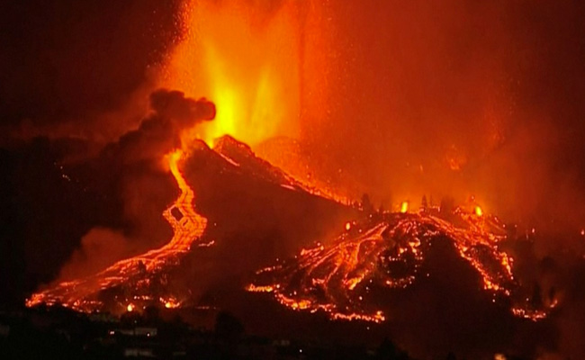 A volcano erupted on the Spanish Canary Island of La Palma on Sunday, sending lava shooting into the air and streaming in rivers towards houses in two villages from the Cumbre Vieja national park in the south of the island.