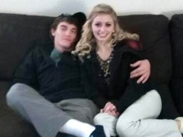 Dalton Hayes poses with his girlfriend Cheyenne Phillips at his family's home in Leitchfield, Kentucky. (Associated Press)