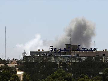 Smoke rises from the Faculty of Mechanical Engineering Technology school compound after a Libyan air force plane dropped a bomb in Benghazi on June 1, 2014