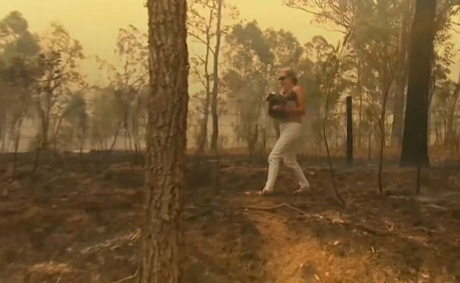 As bushfires rage across southeastern Australia ravaging vast swathes of area, including the habitat of native wildlife, a heartwarming has video surfaced on the internet showing a woman rescuing a koala from the burning woods.