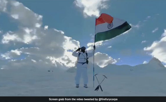 The Fire and Fury Corps of the Indian Army shared the video on Twitter showing Siachen Warriors walking with the national flag and hoisting it.