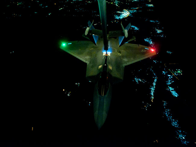 An F-22A Raptor refueling prior to strike operations in Syria. (Agence France-Presse)
