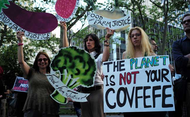 Green activists display placards during a demonstration in New York against Donald Trump. (AFP)