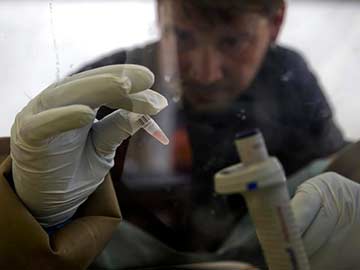 A scientist separates blood cells from plasma cells to isolate any Ebola RNA in order to test for the virus at the European Mobile Laboratory in Gueckedou April 3, 2014.
