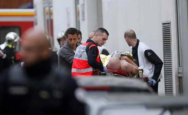 An injured person is treated by nursing staff outside the French satirical newspaper Charlie Hebdo's office in Paris on Wednesday. (Associated Press)