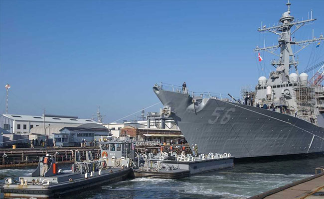 The ship, which was undergoing repairs at the Yokosuka US naval base after a 2017 collision, would have been difficult to move for Trump's speech on board another ship there Tuesday, the newspaper said, citing officials.