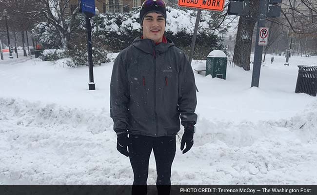 Many Washington residents might say jogging in this weekend's weather is crazy. Eli Powell would disagree. (Washington Post photo by Terrence McCoy.)