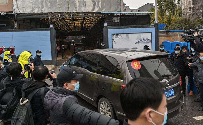 Members of the group arrived at Huanan seafood market -- which has been sealed since January last year -- driving into its barricaded premises as guards quickly blocked others from entering, according to AFP journalists at the scene.