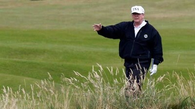 It may not be typical golf attire, but one of the most ubiquitous outfits seen on US President Donald Trump 's golf course Friday ahead of his visit was the reflective yellow vest worn by Scottish police.