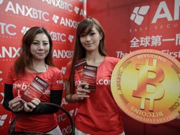 Promotion girls pose during the opening ceremony of the city's first bitcoin retail shop in Hong Kong on February 28, 2014