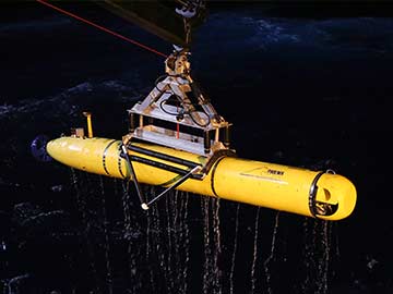 A handout photo taken on April 17, 2014, and released by Australian Defence on April 24, 2014 shows the Phoenix Autonomous Underwater Vehicle (AUV) Artemis being recovered onto Australian Defence Vessel Ocean Shield after completing a mission in the searc