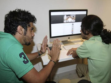 Members of the Uturn comedian group work on a Youtube video in Jeddah