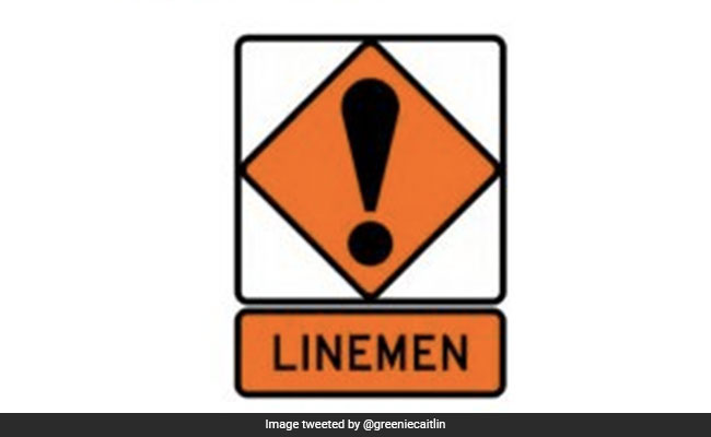 The sign "Linemen" indicates that people installing or fixing power lines are working in the area.